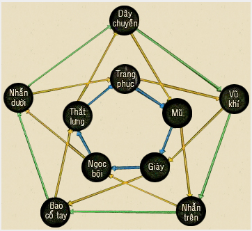 10 loại trang bị chia làm 5 cặp để kích hoạt thuộc tính ẩn như sau: