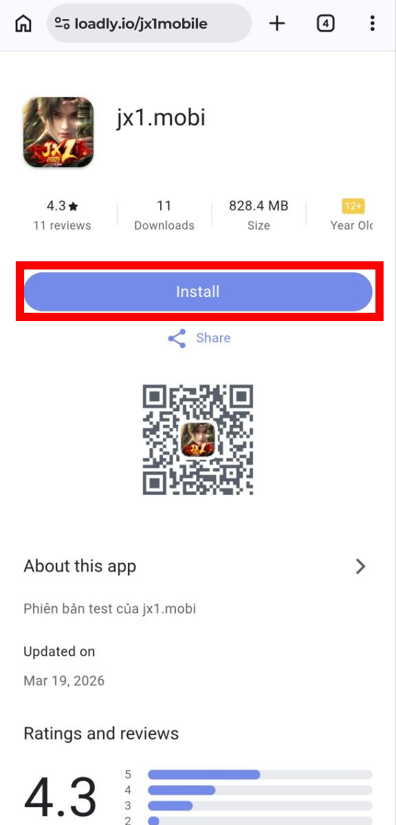 Bước 1: Bấm vào nút Install trên link tải chính thức.