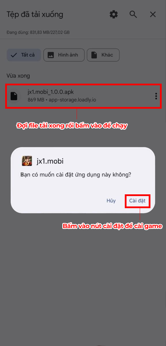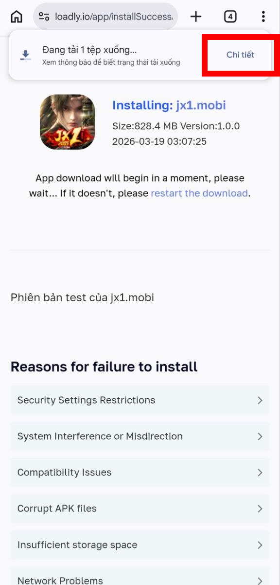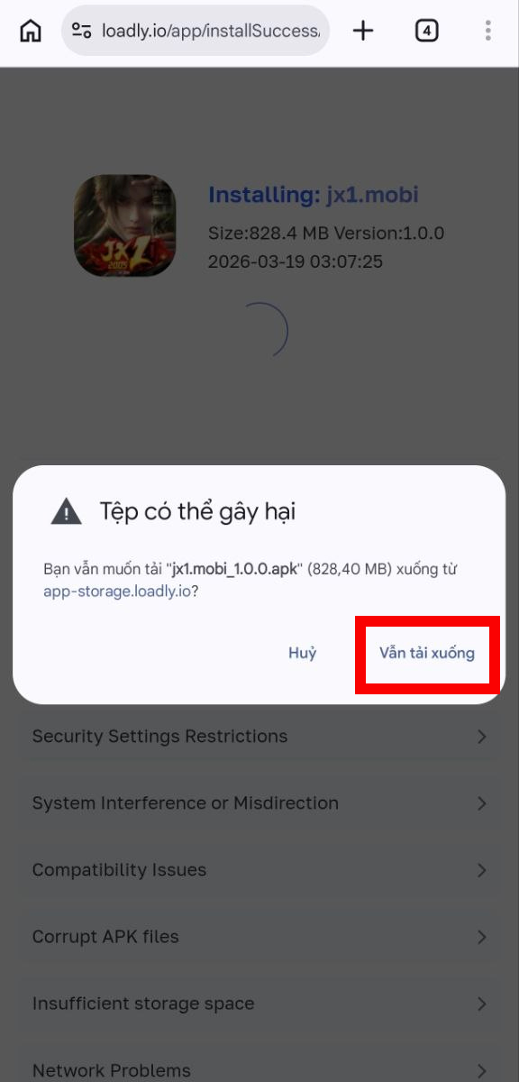 Bước 2: Bấm vào tải xuống đối với một số hệ điều hành có chặn file APK.