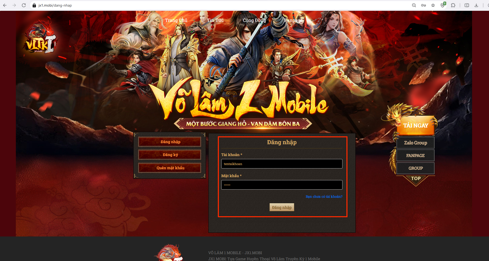 Bước 2: Nếu chưa đăng nhập tài khoản, đại hiệp hãy đăng nhập. Lưu ý đăng nhập đúng tài khoản mà đại hiệp muốn nhận xu.