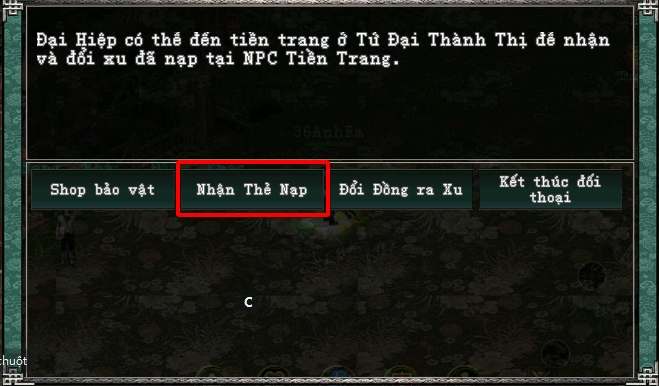 Bước 4: Sau khi hoàn tất nạp xu và tài khoản đã có xu, vui lòng tới NPC Chủ Tiền Trang trong game để rút xu.