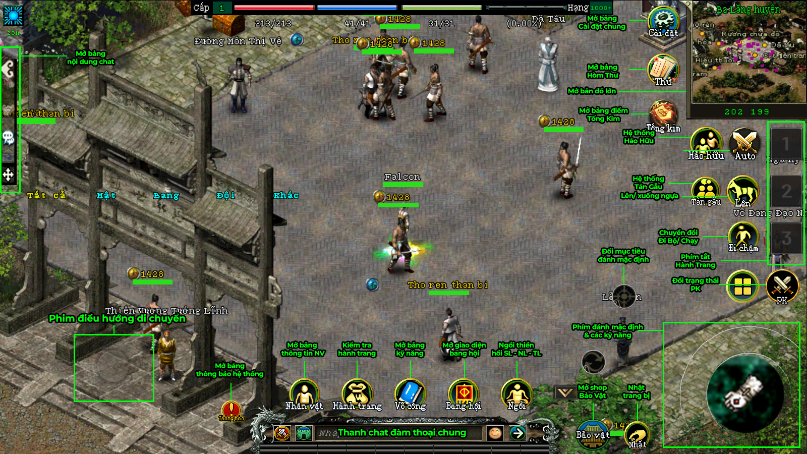 Ngoài ra, để tương tác với các NPC hoặc lựa chọn mục tiêu cụ thể khi PK, các đại hiệp có thể bấm trực tiếp lên vị trí của NPC/ nhân vật trên màn hình.